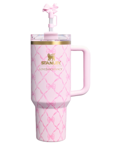 The 40-ounce Quencher® H2.0 FlowState™ Tumbler keeps your drink ice cold for hours, thanks to double-wall vacuum insulation. The versatile FlowState™ 3-position lid has three sip settings: one for the reusable straw, one without and the option to rotate the silicone cover shut when you’re on the go. Did we mention it’s adorned with a bow-shaped Straw Topper?