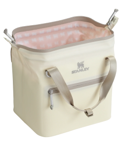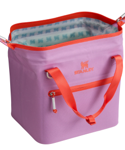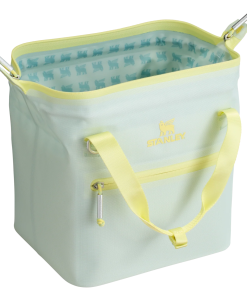 With a 10-can storage capacity, the All Day Julienne Mini Cooler keeps your goods nice and cool for 12 hours. The unique “doctor’s bag” hinge top pops open to help with unpacking. Load up with reusable ice packs, pop it shut and the sturdy zipper keeps things safely stored. The snap-top handles have a comfortable grip, while a zippered pocket protects your valuables. There’s also the option to attach the strap to sling the cooler over your shoulder. From acai bowls to charcuterie, sparkling beverages and wine are ready to be enjoyed. Don’t forget to pack all your favorite snacks and drinks in Stanley style.