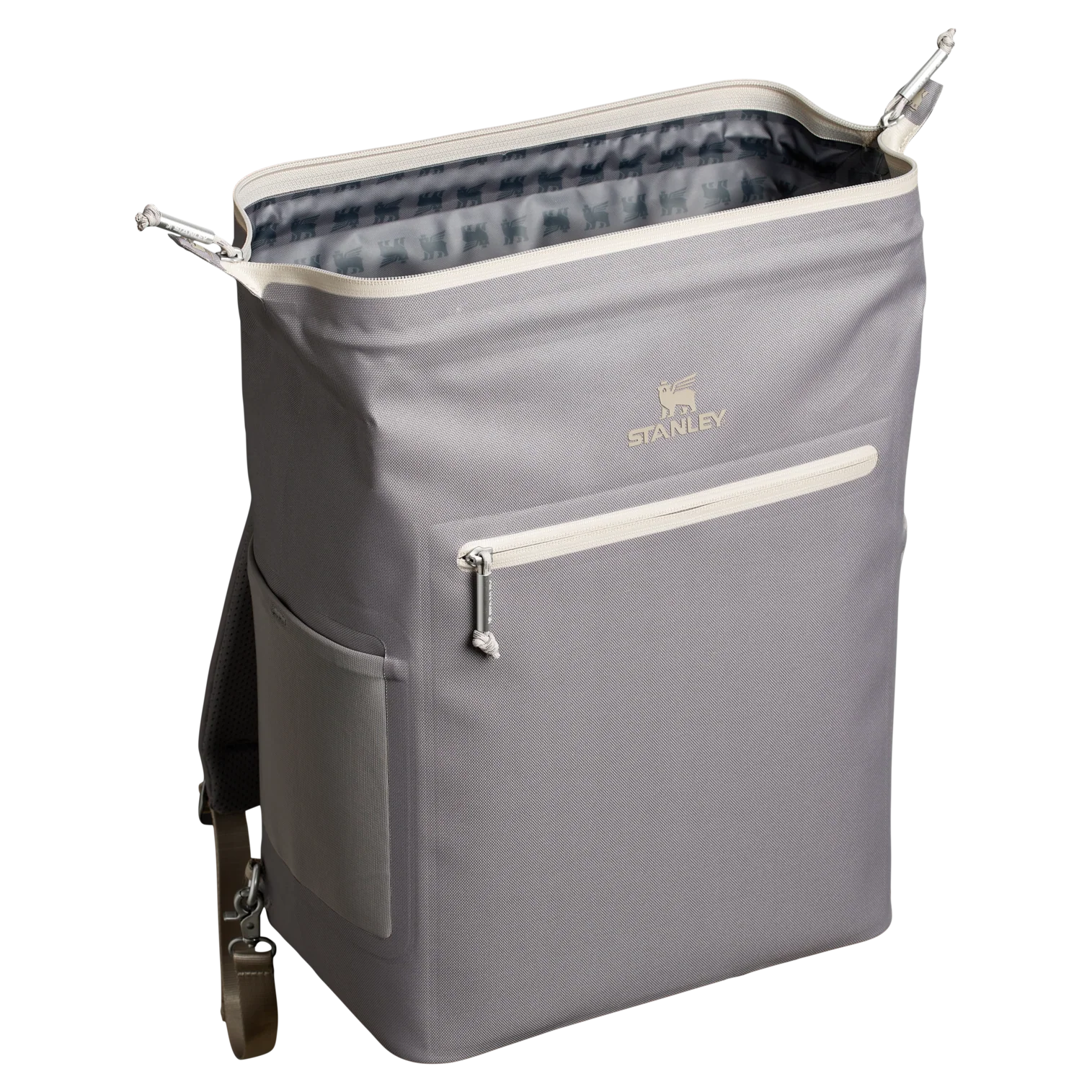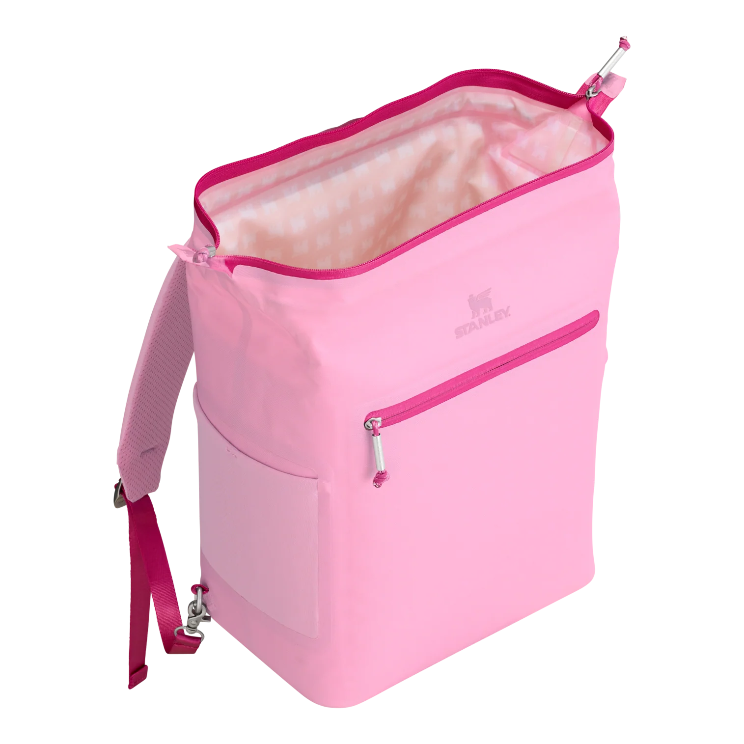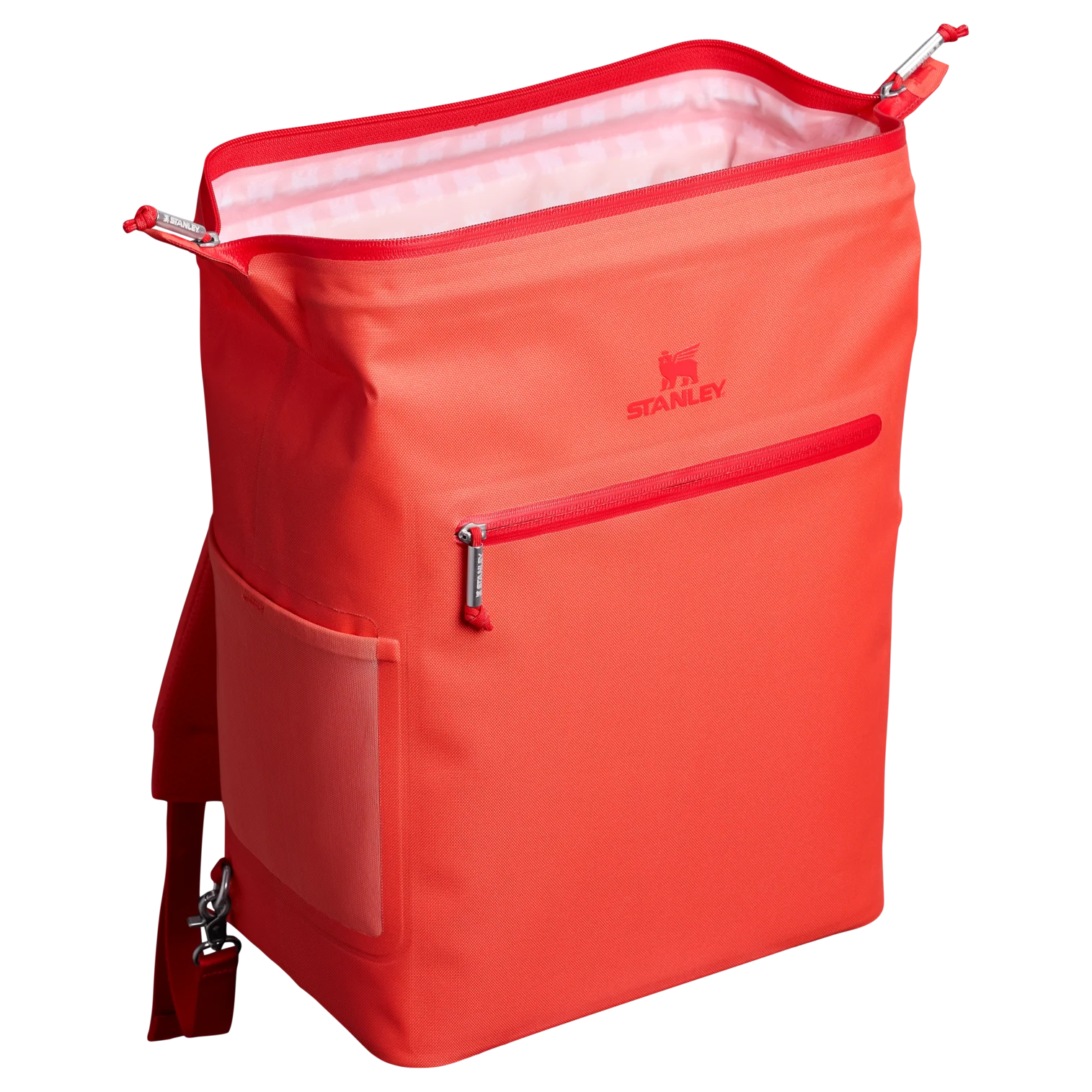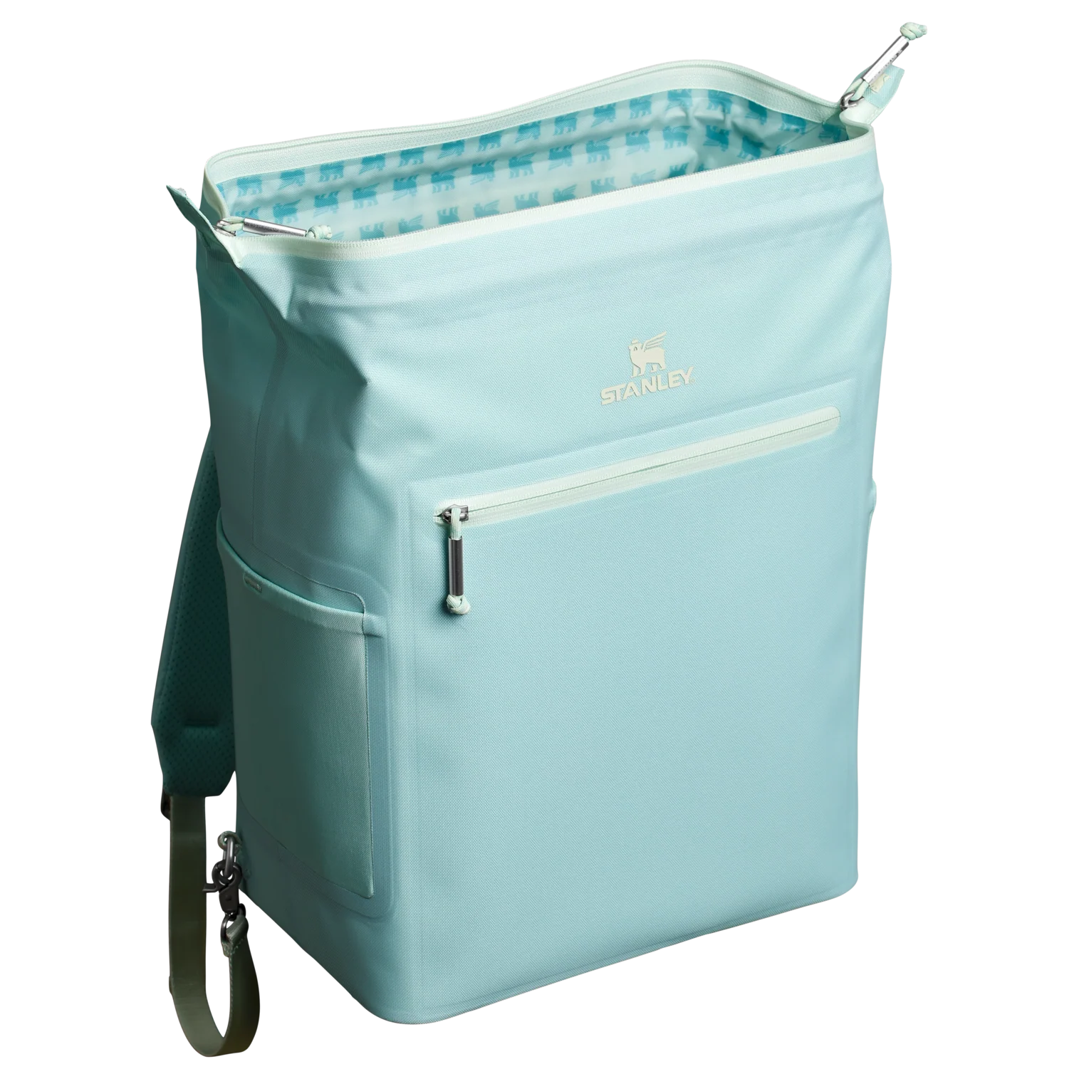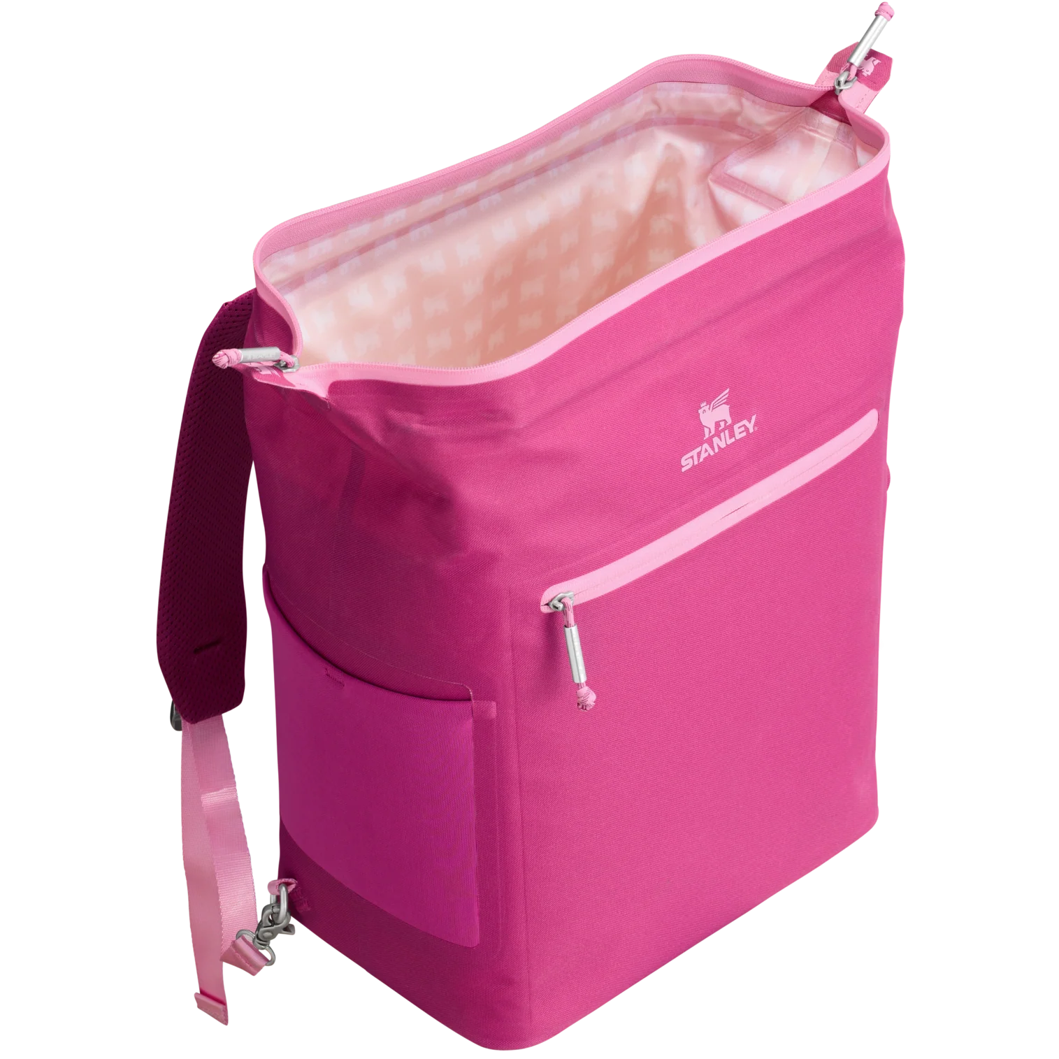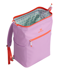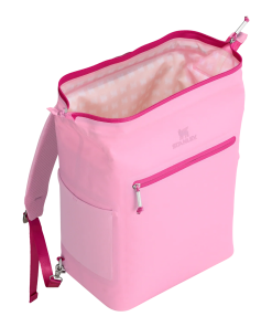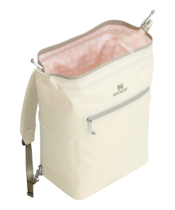 With a 20-can storage capacity, the All Day Madeleine Midi Cooler Backpack maintains the perfect chill for 24 hours. There’s even a mesh pocket designed to fit your Quencher or bottled beverage of choice. The unique “doctor’s bag” hinge top pops open to help with unpacking, and padded straps make carrying more comfortable. Load up with reusable ice packs, pop it shut and the sturdy zipper keeps it all safely stored. A discreet zipper pocket on the cooler’s back helps to protect valuables. From smoothies to fresh sandwiches, your favorite wine and beverages are ready to share. Don’t forget to pack all your favorite snacks and drinks in Stanley style.