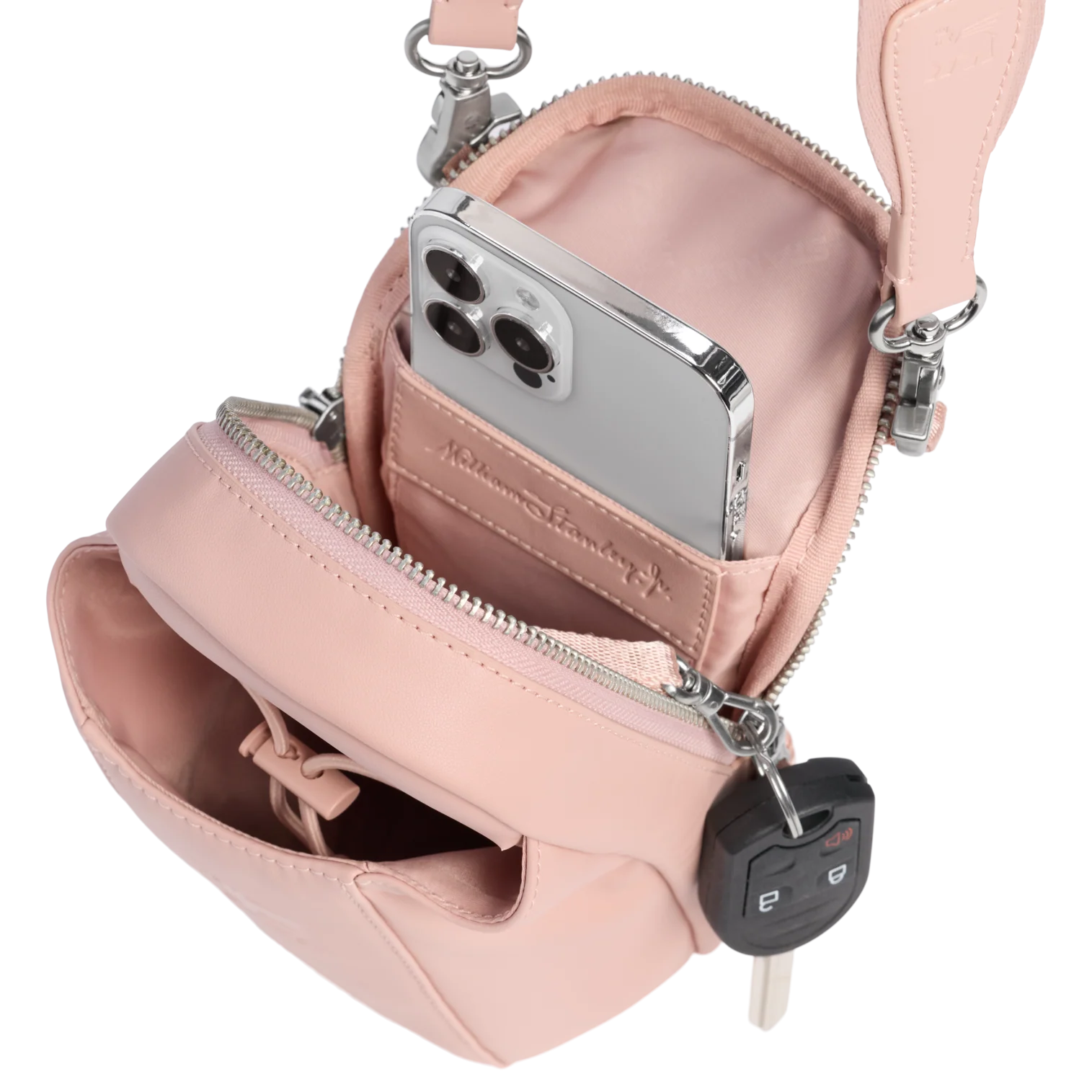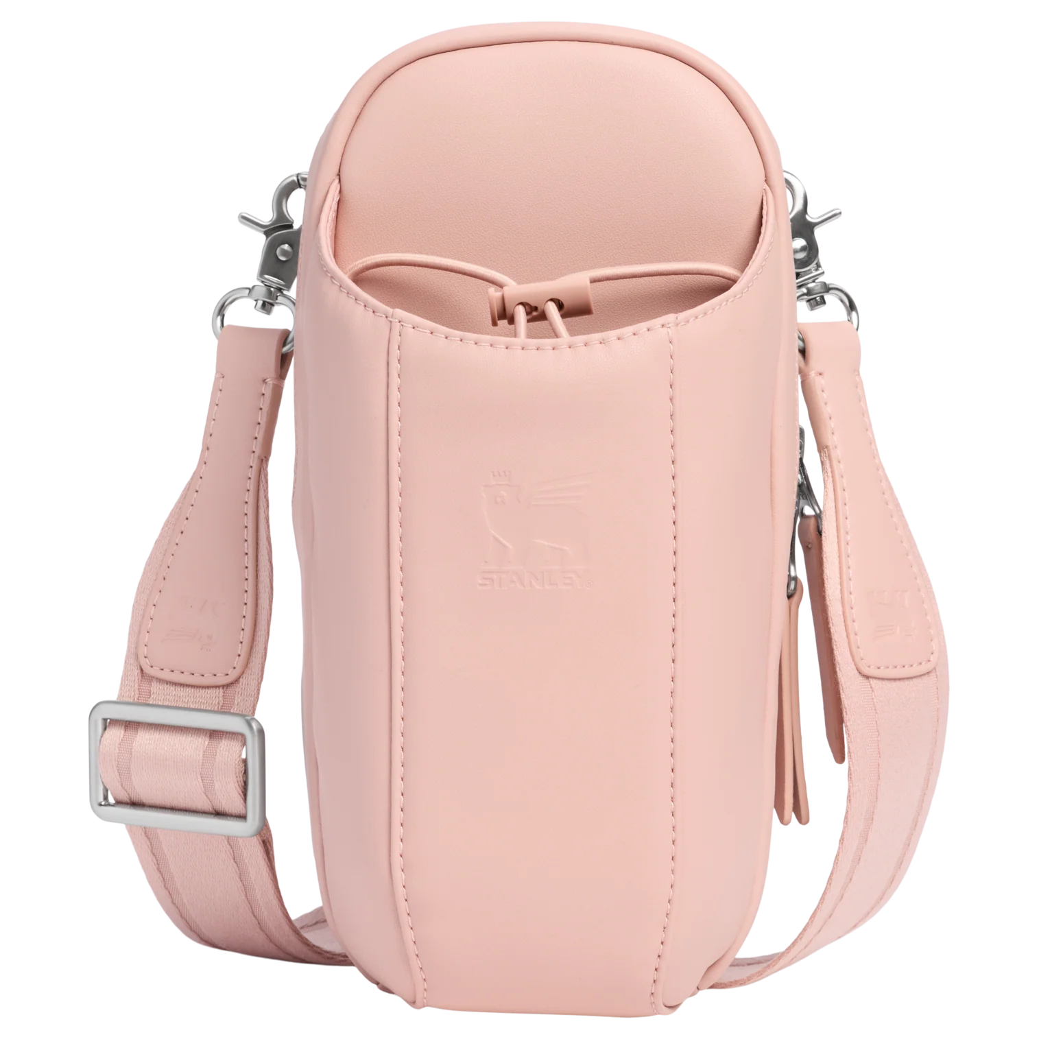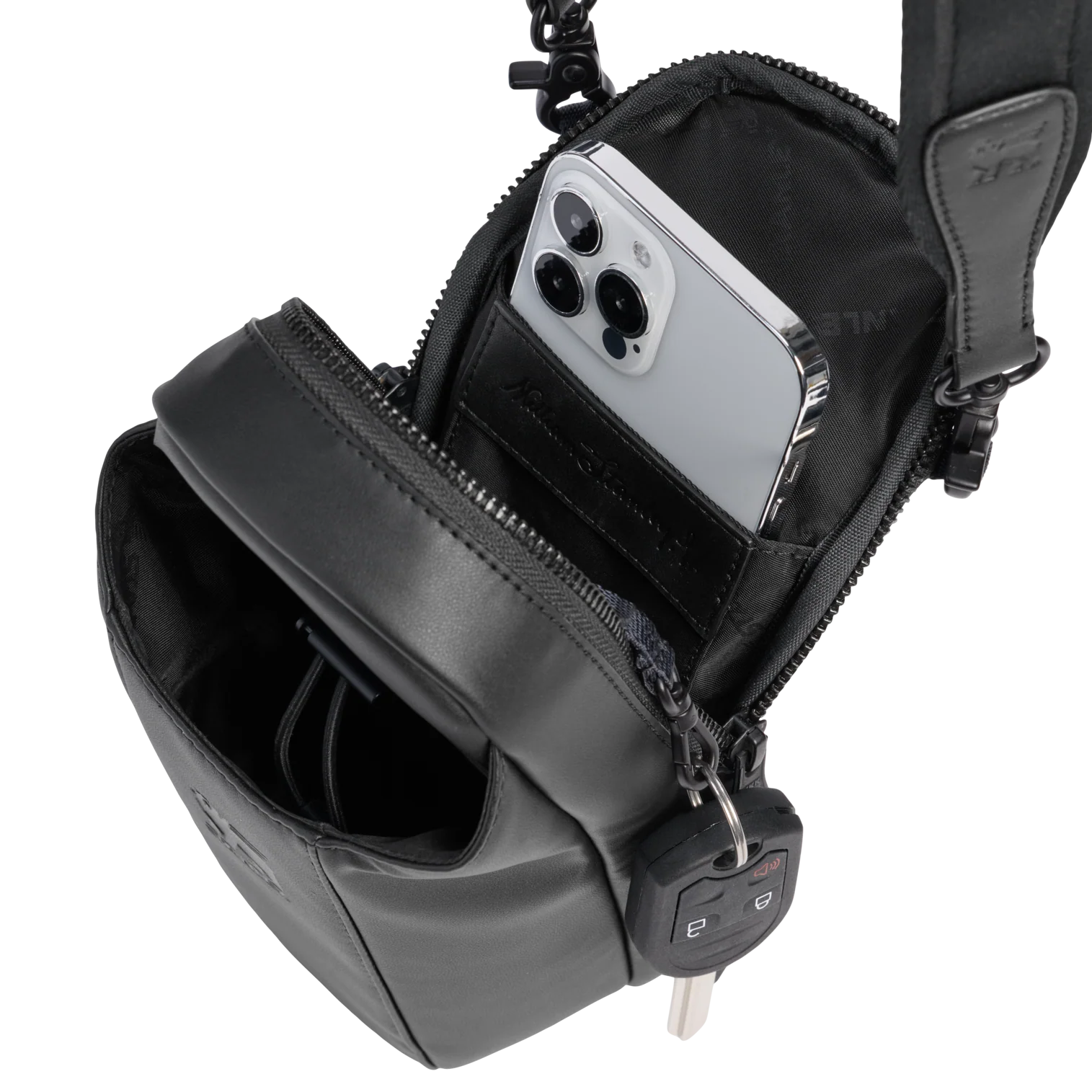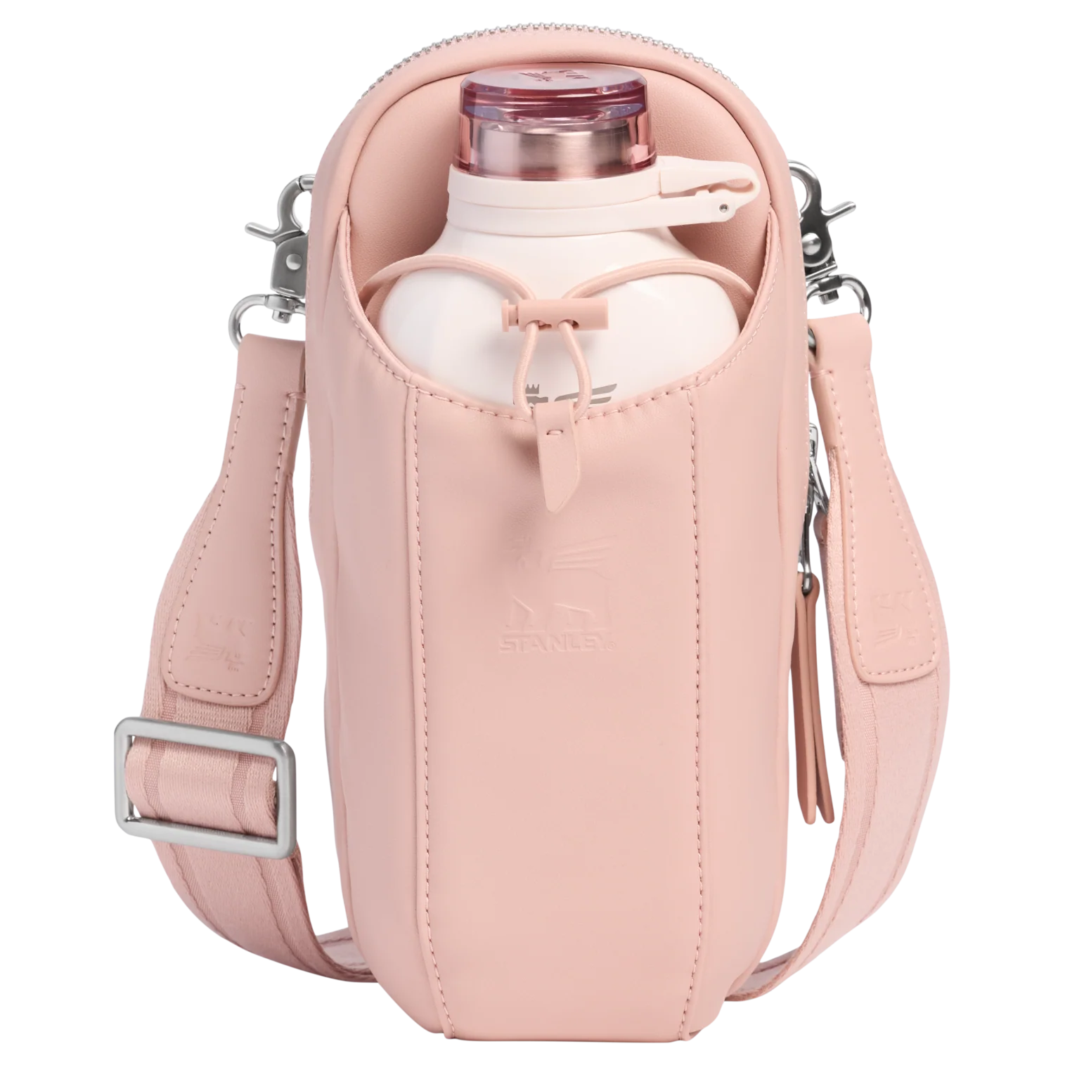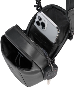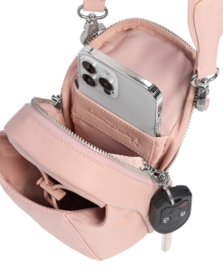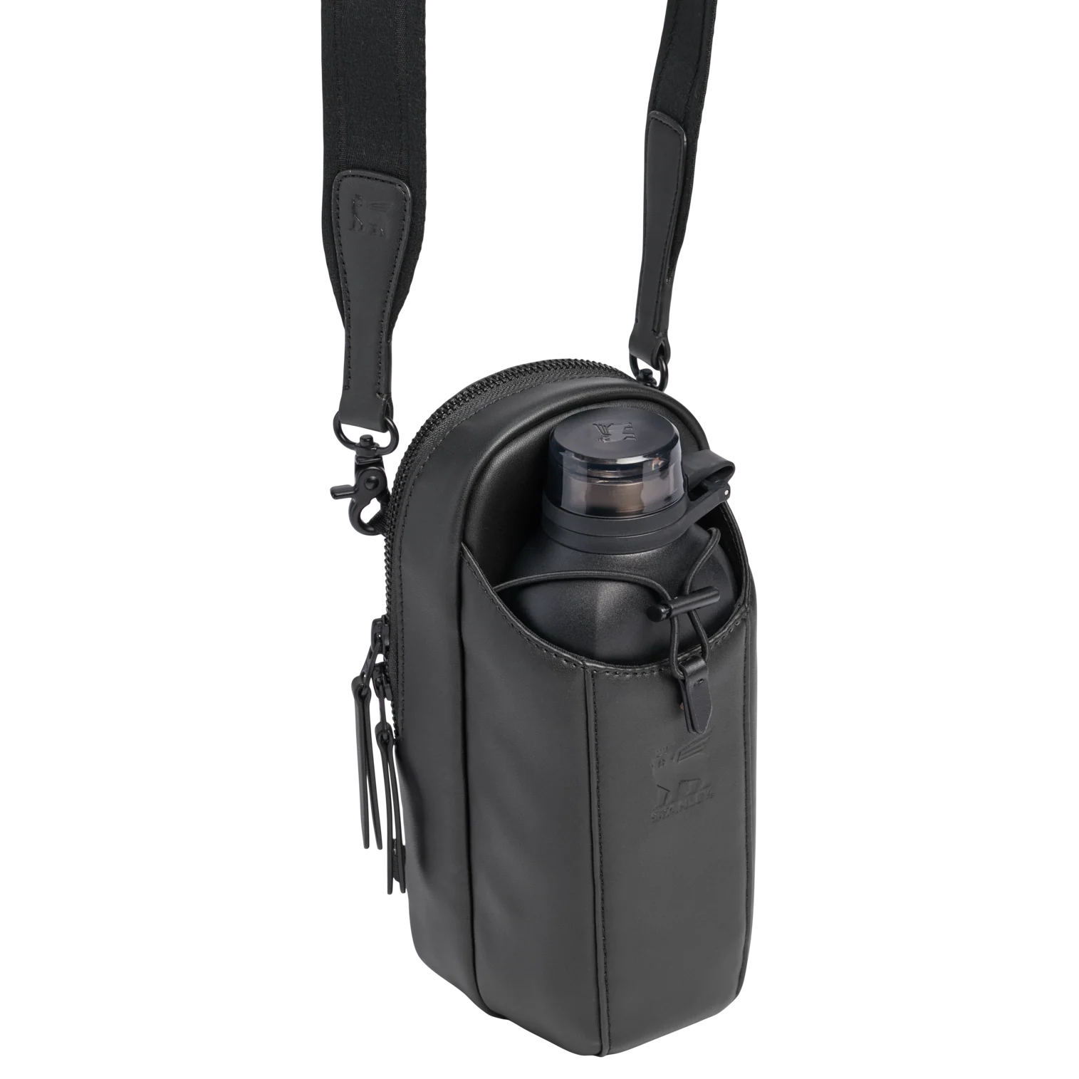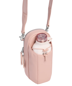 The leakproof Clutch Bottle or 16-ounce Transit Bottle slides easily into the front bottle pouch, then locks down tight with the bottle securing strap. The zippered main pocket fits valuables like your phone, a snack, earphones, wallet and more. Wear it in front, back, up or down. Built to go where you go and look good along the way.