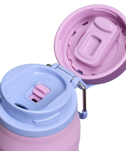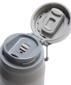Pop open the lid with a twist of the outer ring. The Twist Flip lid locks and unlocks, while the Flow Steady control lets you adjust the flow of your 24-ounce drink. When you’re done, pop the lid closed and lock it to protect your sip space.