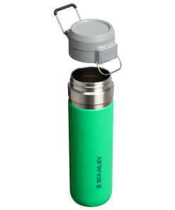 The Quick Flip GO Bottle can fit in most cup holders so it can ride along in your vehicle. The Double Wall Insulation keeps your favorite tea, coffee, or other hot drinks hot for up to 8 hours or cold for up to 12 hours. This trigger action lid makes this travel thermos spill-proof and easy for one-handed use. The lid is designed with a push button, which opens the mouthpiece on top. You can throw this spill-proof bottle in your work bag without worrying.