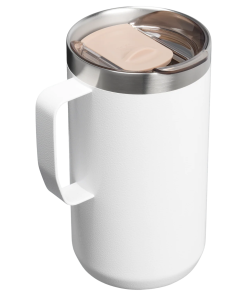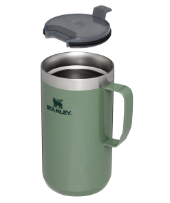 Just the right size for long mornings or anytime you need a fuller cup. The 24 ounce Stay Hot Camp Mug has the legendary performance you expect from a Stanley, with fewer trips to refill. This one is built to last, with solid 18/8 stainless steel construction. Double-wall vacuum insulation keeps your favorite drinks hot for hours, and the secure press-fit Tritan™ Drink-Thru Lid prevents splashes and makes sipping easy. Keep it with you in the backyard, take it on the road, or enjoy it while lounging by the fireside.