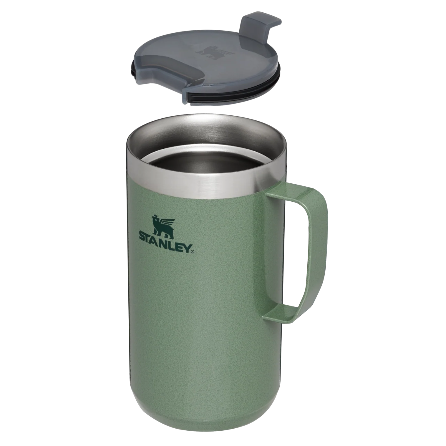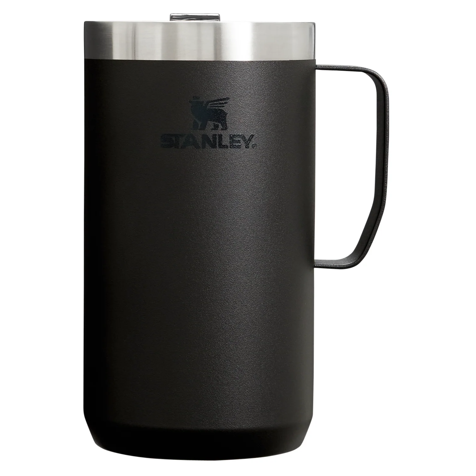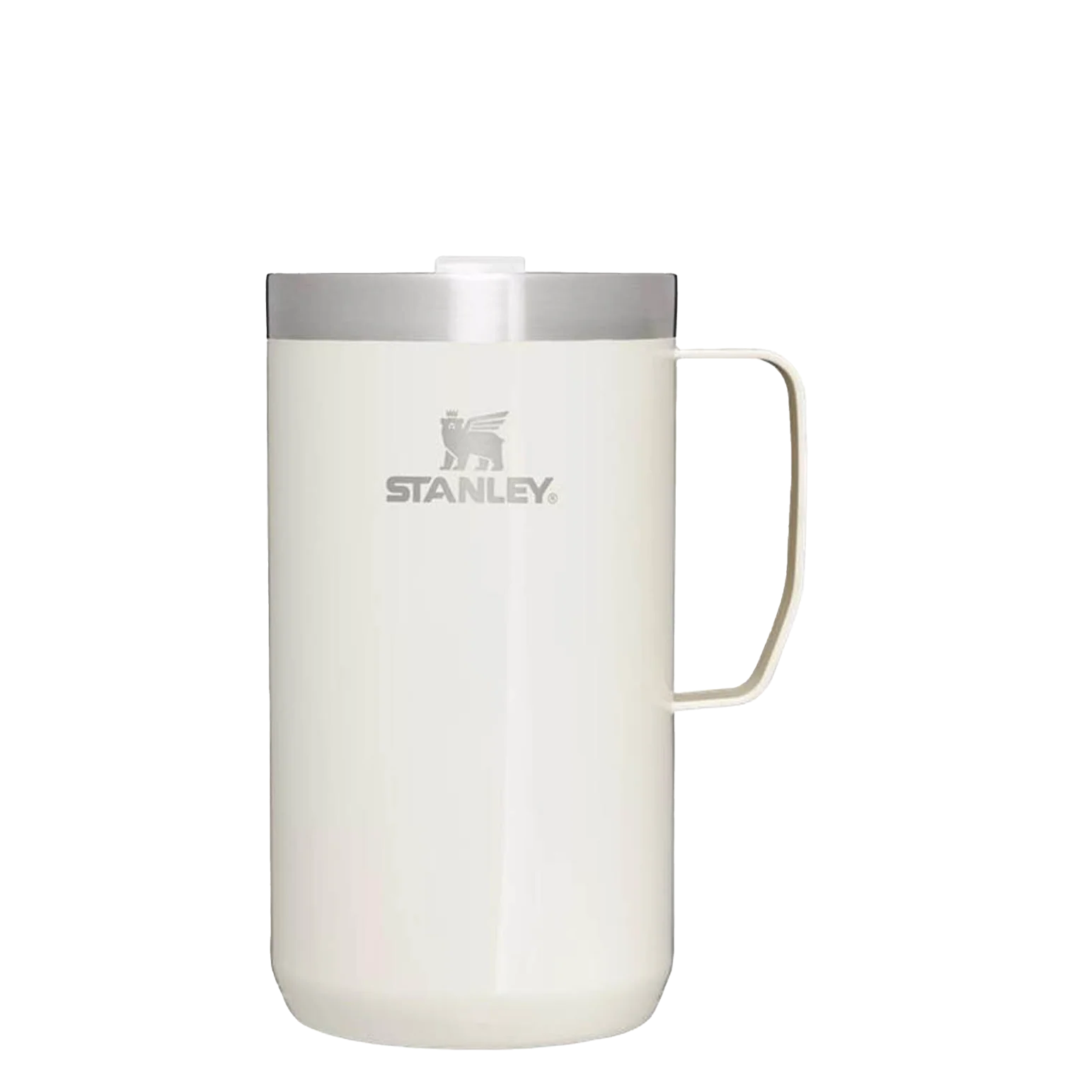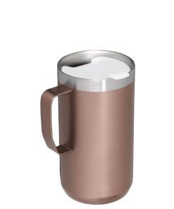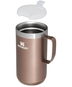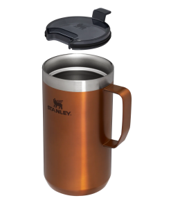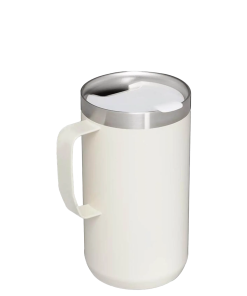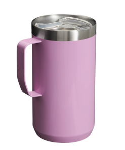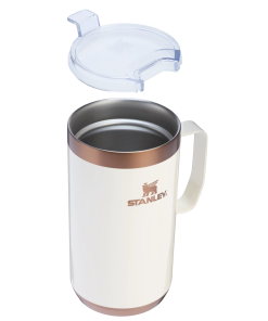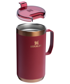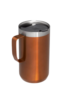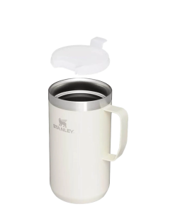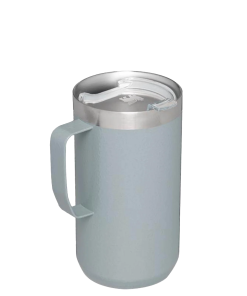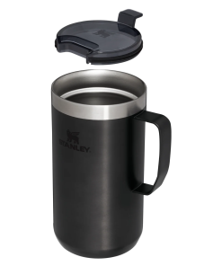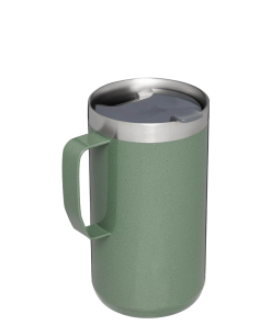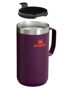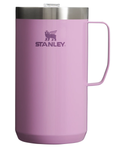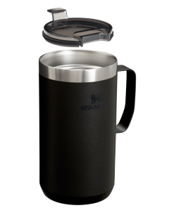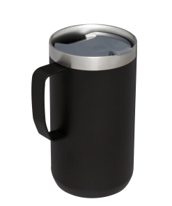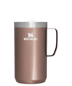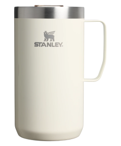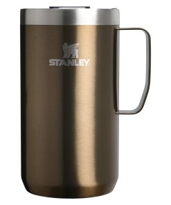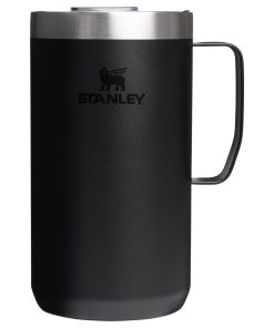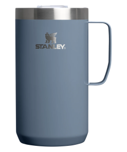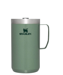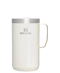 Just the right size for long mornings or anytime you need a fuller cup. The 24 ounce Stay Hot Camp Mug has the legendary performance you expect from a Stanley, with fewer trips to refill. This one is built to last, with solid 18/8 stainless steel construction. Double-wall vacuum insulation keeps your favorite drinks hot for hours, and the secure press-fit Tritan™ Drink-Thru Lid prevents splashes and makes sipping easy. Keep this insulated mug with a handle and lid with you in the backyard, take it on the road, or enjoy it while lounging by the fireside.