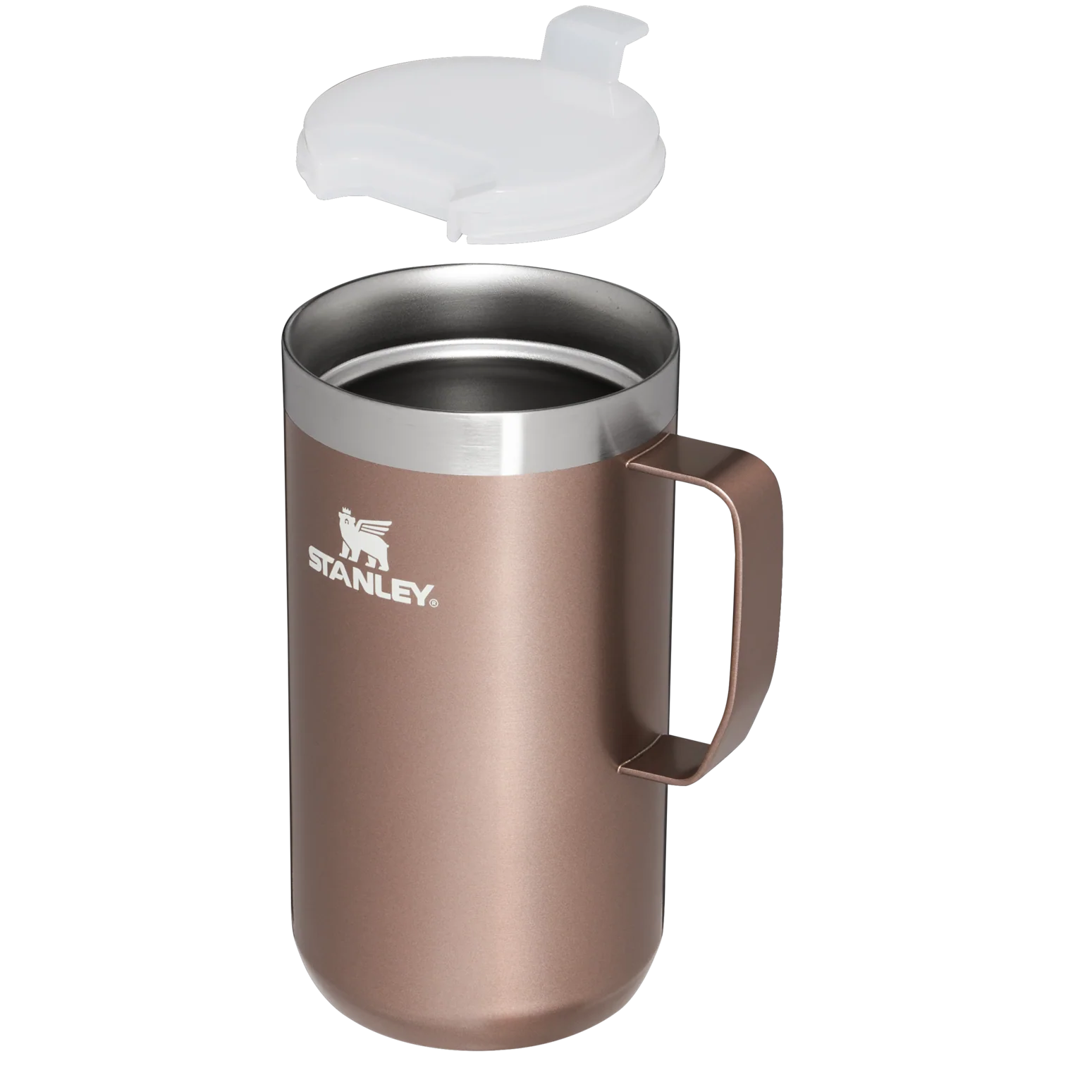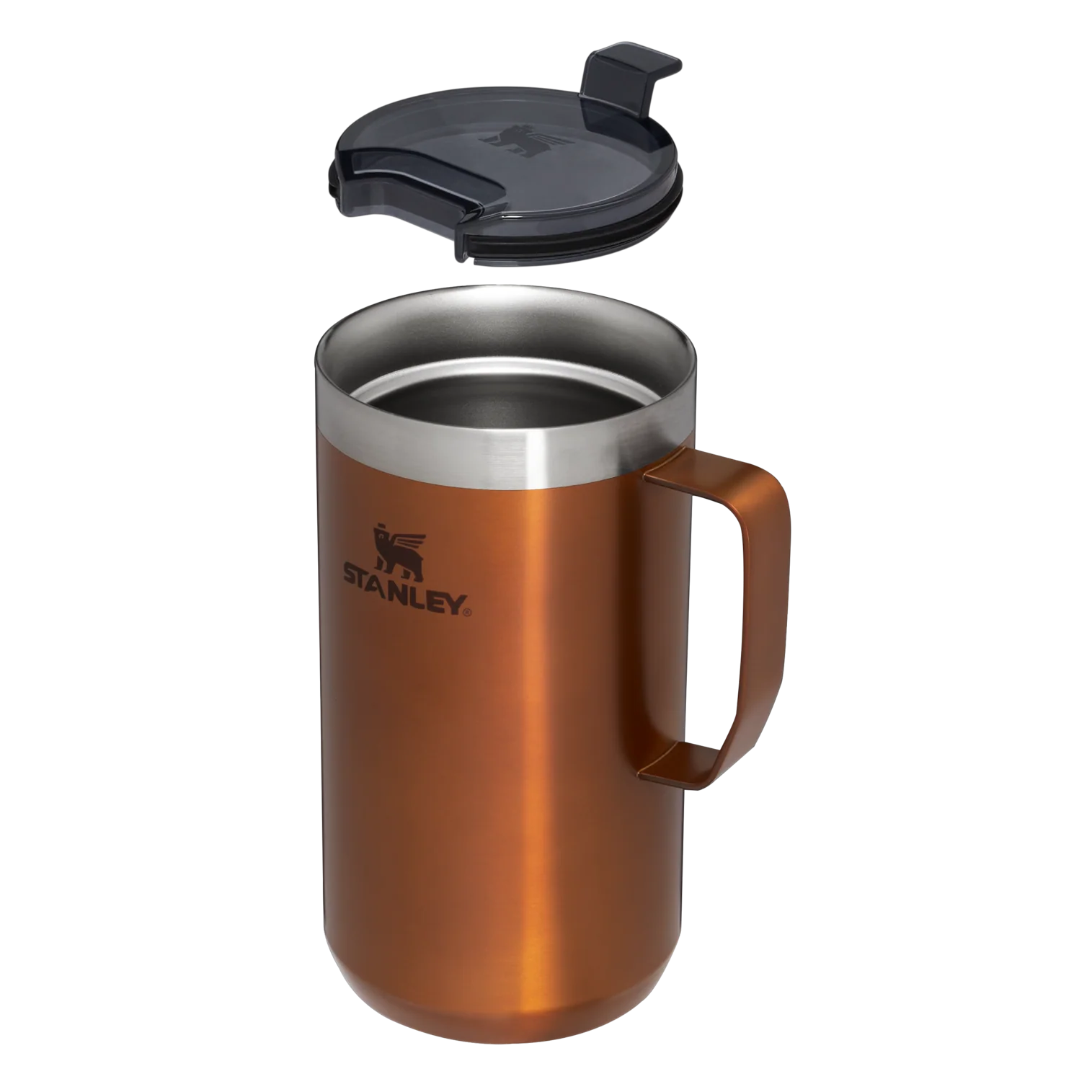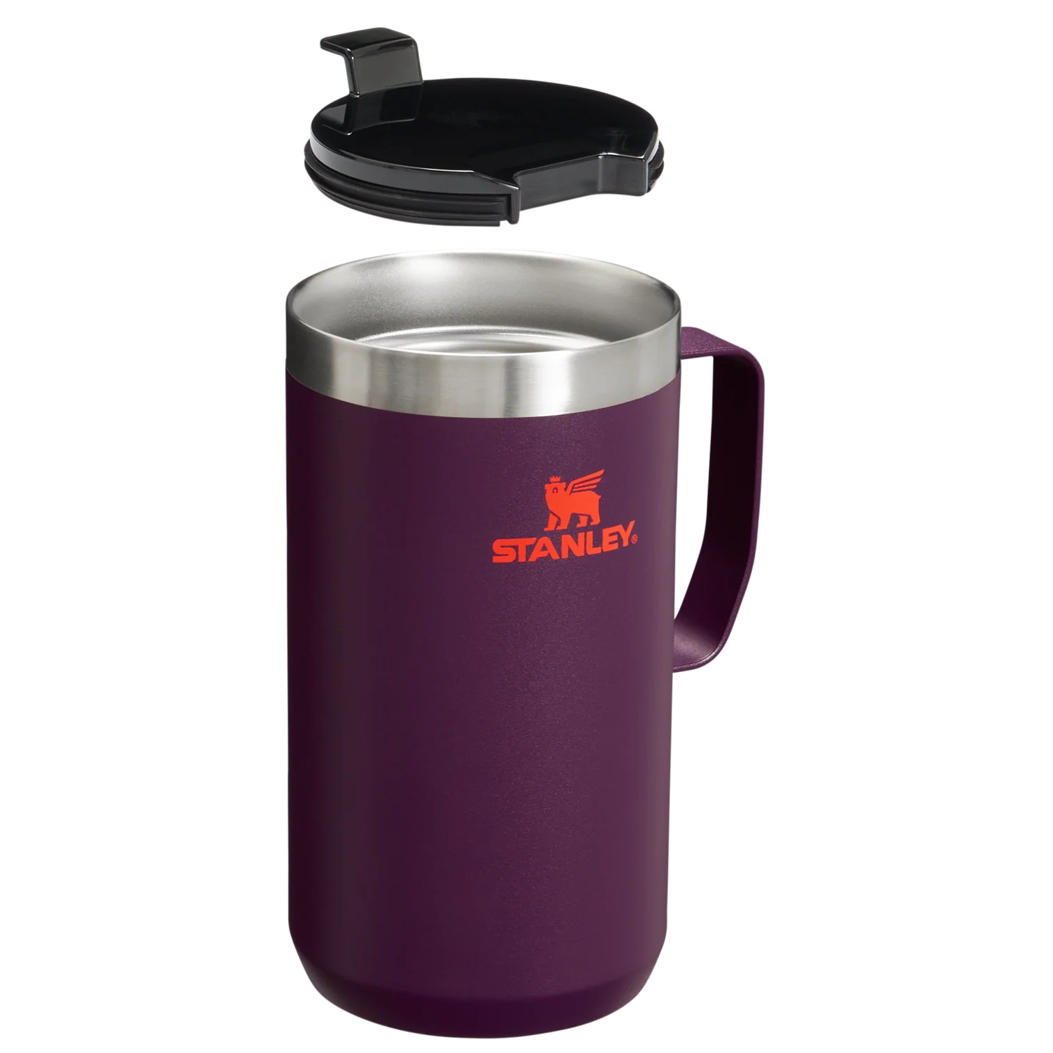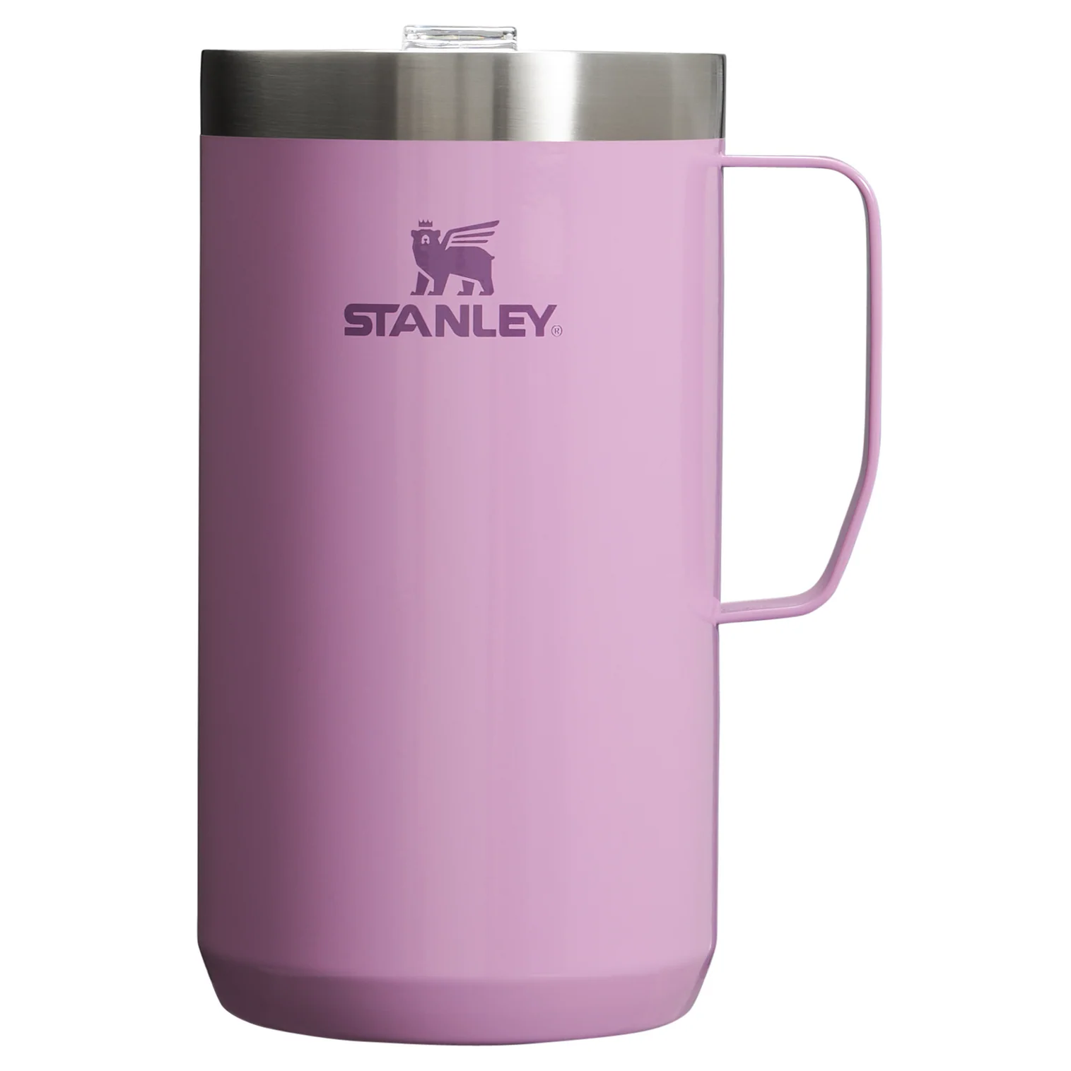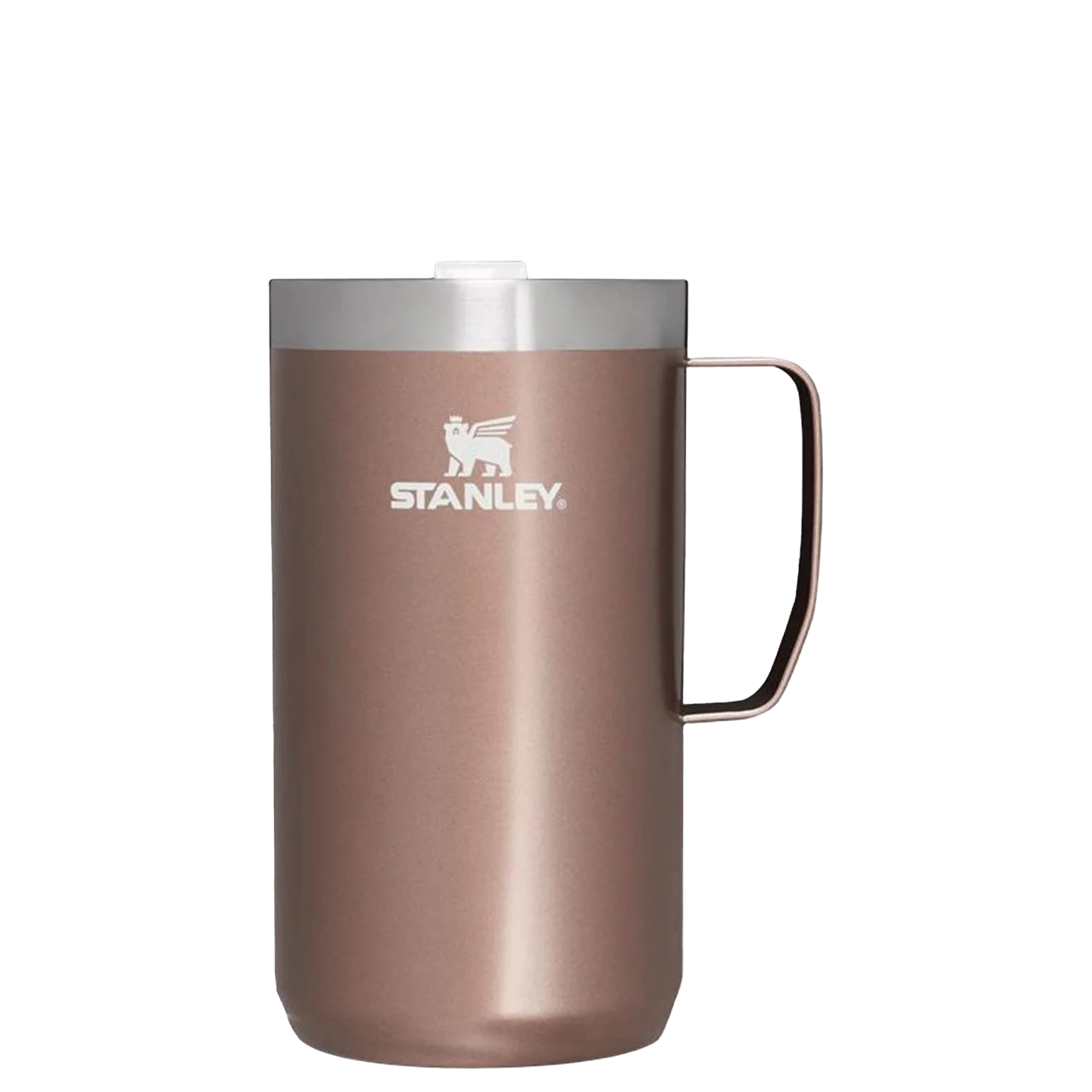 Just the right size for long mornings or anytime you need a fuller cup. The 24 ounce Stay Hot Camp Mug has the legendary performance you expect from a Stanley, with fewer trips to refill. This one is built to last, with solid 18/8 stainless steel construction. Double-wall vacuum insulation keeps your favorite drinks hot for hours, and the secure press-fit Tritan™ Drink-Thru Lid prevents splashes and makes sipping easy. Keep this insulated mug with a handle and lid with you in the backyard, take it on the road, or enjoy it while lounging by the fireside.