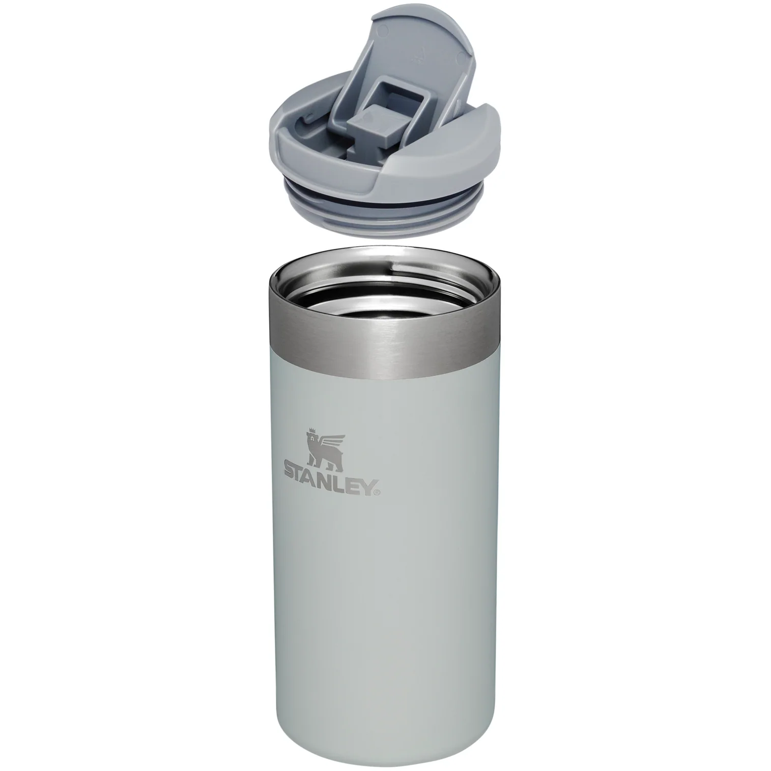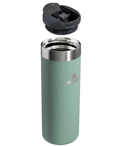 The 16-ounce Transit Flip Top Mug has premium AeroLight™ technology that makes it significantly lighter than standard stainless steel. Featherweight spun-steel with vacuum insulation keeps your drink at the right temperature for hours. Matching silicone at the lid tab and footpad makes opening, closing and setting it down quieter.