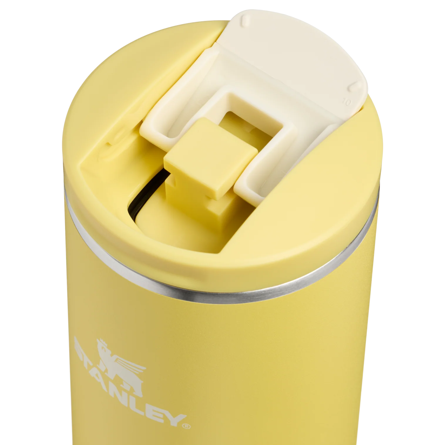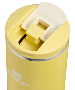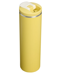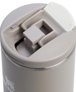 The 20-ounce Transit Flip Top Mug has premium AeroLight™ technology that makes it significantly lighter than standard stainless steel. Featherweight spun-steel with vacuum insulation keeps your drink at the right temperature for hours. Matching soft silicone at the lid tab and footpad makes opening, closing and set downs quieter.