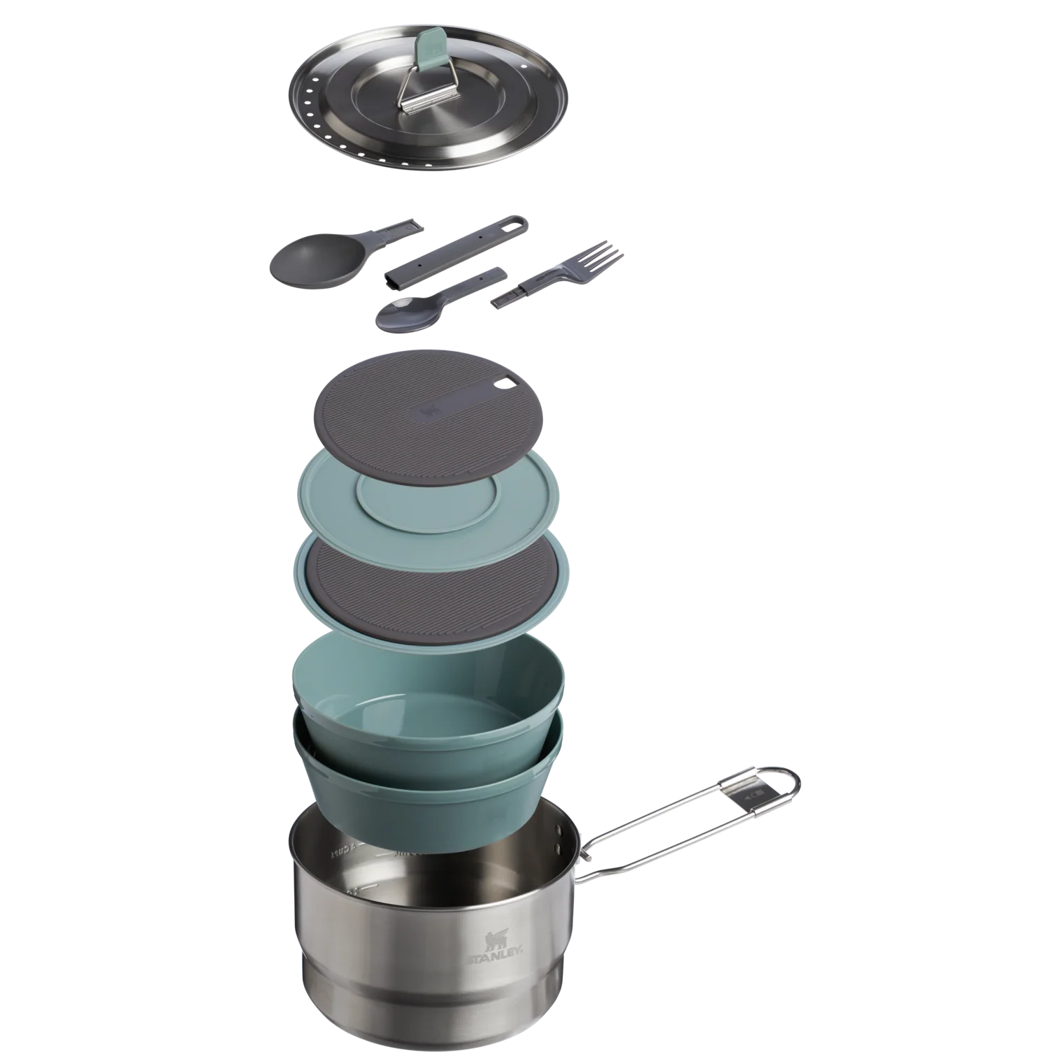 The 14-piece Wildfare Go Two Bowl Prep & Cook Set nests neatly together for efficiency. Open the 1.65-quart stainless steel saucepan to find two 16-ounce bowls inside. The included two-piece spatula and pair of dual-sided sporks go easily from compact to full sized. Nonslip cutting boards include removable silicone trivets. All the luxury of cooking at home, in the wild with a fully equipped 14-piece camp cookware set designed for trail-ready convenience.