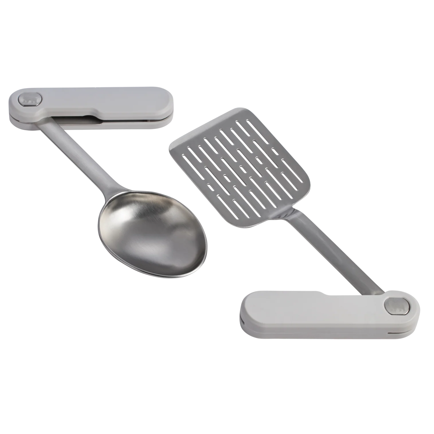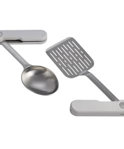 The 2-piece Wildfare Pro Fold & Go Utensil Set is a camping utensil set that packs chef-level tools when you’re cooking outdoors. The brushed stainless steel 10.25-inch spoon and 10.75-inch spatula are durably made for searing and serving. And the clever folding utensil design is compact for efficient storage until your next culinary creation.